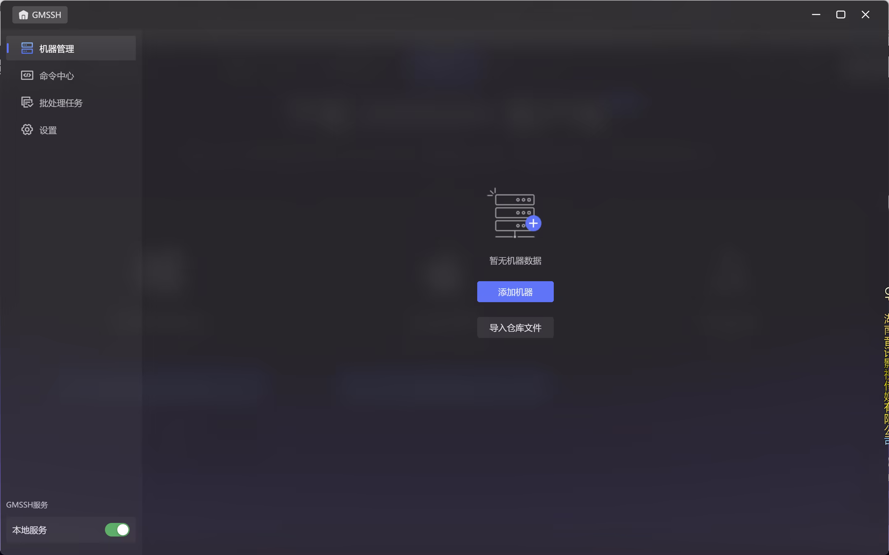 安装成功后,打开 GMSSH 客户端,即可进入机器管理主界面,点击添加机器,开始配置你的第一台托管服务器。
